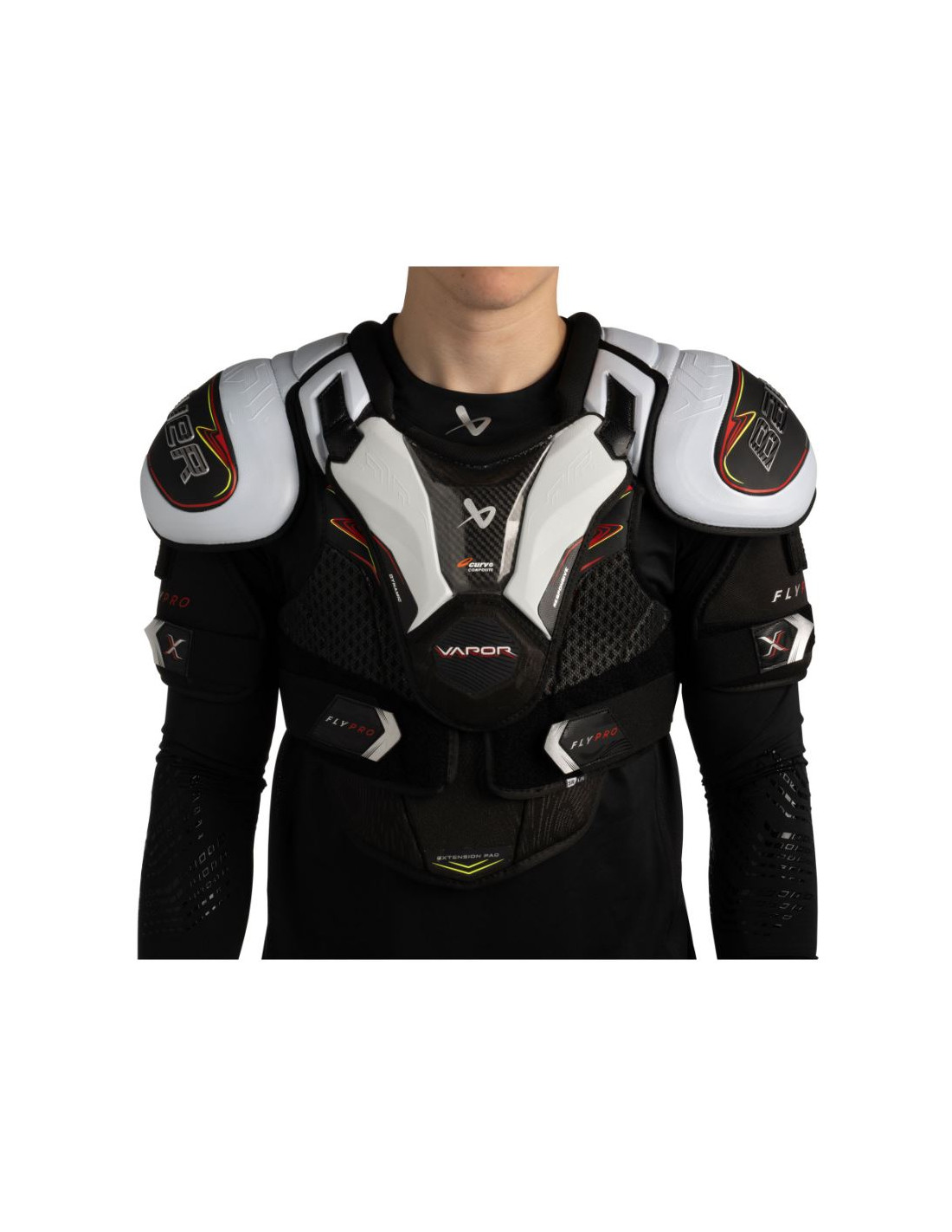 | Bauer Vapor FLYPRO Shoulder Pads JR är designade för unga spelare som vill ha ett skydd som känns lätt men står emot tuffa tag. CURV®-komposit och exponerat HYPERLITE-skum ger pålitligt skydd utan att öka vikten. Förformade revben och en anatomisk passform håller skyddet på plats under hela spelet, medan det flytande bröstbensskyddet och de fristående bicepsdelarna ger maximal rörlighet i varje moment. EGENSKAPER - CURV®-komposit och HYPERLITE-skum för lätt men starkt skydd - Anatomisk passform med förformade revben - Flytande bröstbensskydd för följsam rörelse - Fristående bicepsdelar för ökad smidighet - Utformat för unga spelare på prestationsnivå SPECIFIKATION - SP Cap: Low profile caps with Hyperlite foam cover - Sternum: Floatting sternum with CURV Composite for lightweight protection - Front Panel Splitted FLEXPRENE vest with molded rib insert - Spine: Molded spine protection with PE insert - Back panel: Full coverage vest with extended rib coverage - Arch: Integrated with molded PE insert - Bicep: Adjustable bicep with molded PE. - Liner: THERMO MAX+ |
